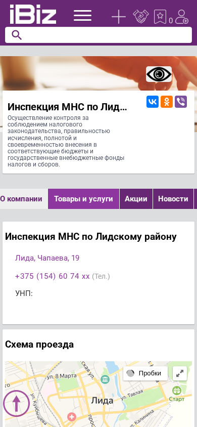 | Название / Заголовок | Инспекция МНС по Лидскому району - Осуществление контроля за соблюдением налогового законодательства, правильностью исчисления, полнотой и своевременностью внесения в соответствующие бюджеты и государственные внебюджетные фонды налогов и сборов.. 0, Лида, , Чапаева, 19 |
