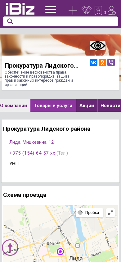 | Название / Заголовок | Прокуратура Лидского района - Обеспечение верховенства права, законности и правопорядка, защита прав и законных интересов граждан и организаций.. 0, Лида, , Мицкевича, 12 |