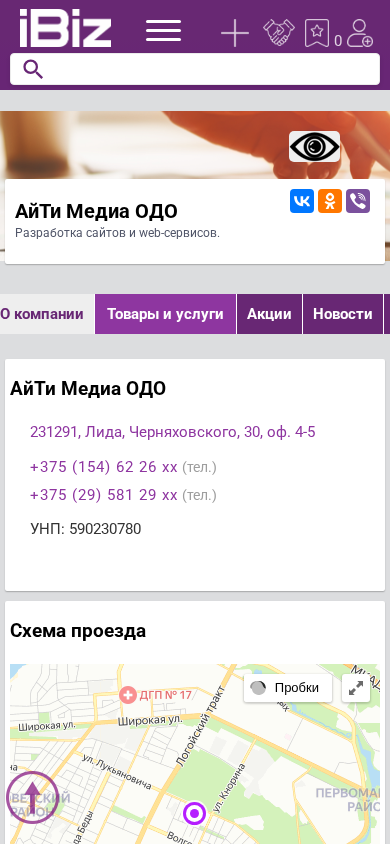 SEO-описаниеАйТи Медиа ОДО - Разработка сайтов и web-сервисов. . Схема проезда, контактные телефоны, адрес компании АйТи Медиа ОДО. 231291, Лида, , Черняховского, 30, оф. 4-5