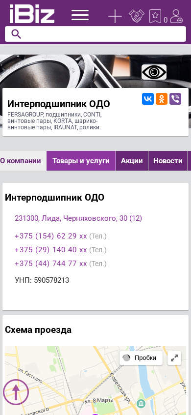 | Название / Заголовок | Интерподшипник ОДО - FERSAGROUP, подшипники, CONTI, винтовые пары, KORTA, шарико-винтовые пары, IRAUNAT, ролики.. 231300, Лида, Черняховского, 30 (12) |