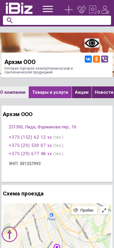 | Адрес | продукция, Акции, Новости, Объявления, Закупки, Вакансии, Видео, Отзывы, Архэм ООО, 231300, Лида, Фурманова пер., 16 |