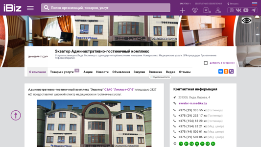| AI-анализ | The web project "Equator Administrative-Hotel Complex" offers hotel services in Lida. The complex comprises of one-two-four bedroom luxury suites. It provides medical services, SPA procedures, mud baths, and reflexology treatments. The complex is located in Lida, Kirova 4 street, and is accessible by various means of transportation. |