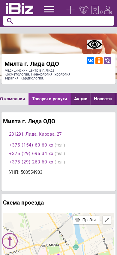 | Название / Заголовок | Милта г. Лида ОДО - Медицинский центр в г. Лида. Косметология. Гинекология. Урология. Терапия. Кардиология.. 231291, Лида, , Кирова, 27 |