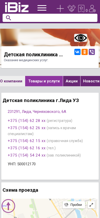 | Название / Заголовок | Детская поликлиника г.Лида УЗ - Оказание медицинских услуг.. 231291, Лида, , Черняховского, 6А |