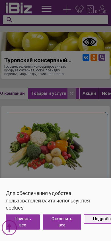 | Название / Заголовок | Туровский консервный комбинат Филиал ОАО Туровщина - Горошек зеленый консервированный, кукуруза сахарная, соки, повидло, варенье, маринады, томатная паста.. 247980, Туров, , Ленинская, 152 |