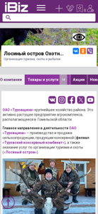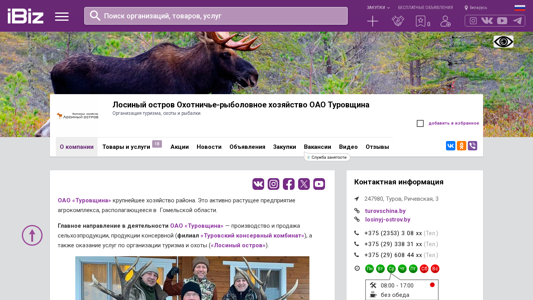 | AI-анализ | The portal 'Los-ostrov.ibiz.by' is an organization offering tourism, hunting, and fishing services in Belarus. Specifically, it is the 'Лосиный остров' branch of OAO 'Туровщина', located in Turov, Richeskaya Street, 3. The website provides a scheme for reaching the location, contact information, and details about the company. The main activities of OAO 'Туровщина' include agriculture and the production of canned goods (Turovsky Conservatory Plant), as well as the provision of tourism, hunting, and fishing services. The hunting division, 'Лосиный остров', offers both individual and group hunting services, with experienced guides available. The land is inhabited by over 50 species of mammals, around 250 species of birds, eleven species of amphib |