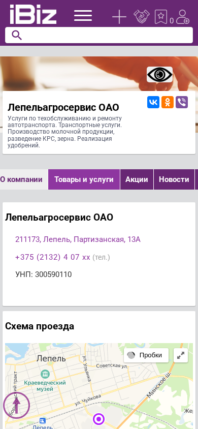 | Название / Заголовок | Лепельагросервис ОАО - Услуги по техобслуживанию и ремонту автотранспорта. Транспортные услуги. Производство молочной продукции, разведение КРС, зерна. Реализация удобрений.. 211173, Лепель, , Партизанская, 13А |