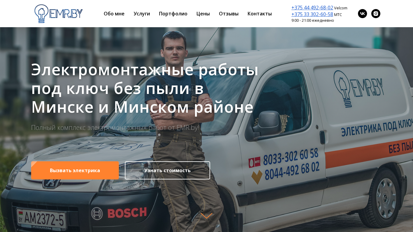 | SEO-описание | Электромонтажные работы под ключ в Минске и Минском районе. Бесплатный выезд. Сделаем качественно и без пыли. |