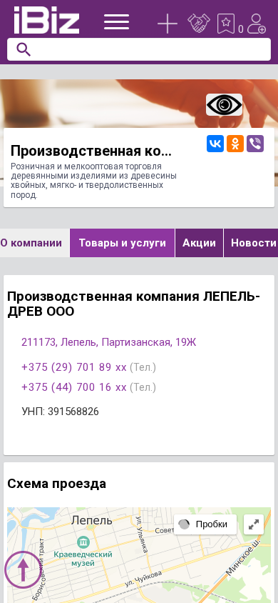 | Название / Заголовок | Производственная компания ЛЕПЕЛЬ-ДРЕВ ООО - Розничная и мелкооптовая торговля деревянными изделиями из древесины хвойных, мягко- и твердолиственных пород.. 211173, Лепель, , Партизанская, 19Ж |