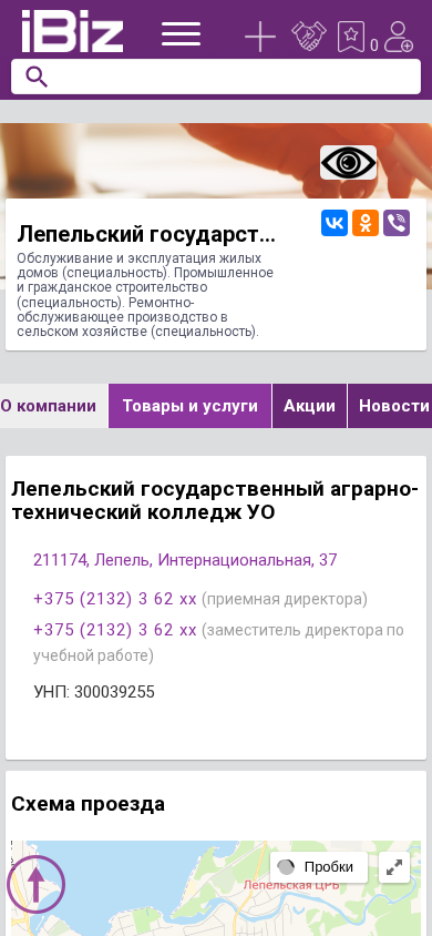 | Название / Заголовок | Лепельский государственный аграрно-технический колледж УО - Обслуживание и эксплуатация жилых домов (специальность). Промышленное и гражданское строительство (специальность). Ремонтно-обслуживающее производство в сельском хозяйстве (специальность).. 211174, Лепель, , Интернациональная, 37 |