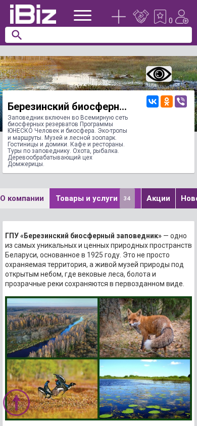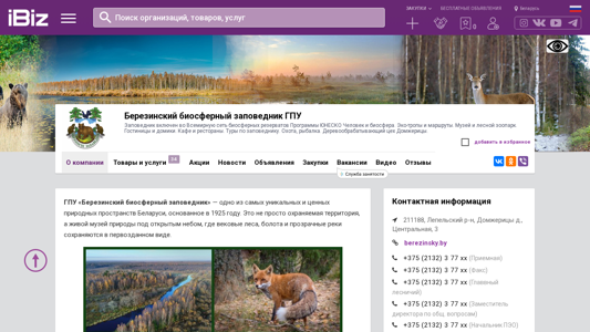 | AI-анализ | title: Березинский биосферный заповедник ГПУ description: The Berezinsky Biosphere Reserve GPU is a nature reserve included in the UNESCO World Network of Biosphere Reserves. It offers ecotrops and routes, a museum and a forest zoo, accommodations and cafes/restaurants, tours of the reserve, hunting and fishing, and a woodworking shop in Domzherytsy. The reserve covers over 130,000 hectares and is home to over 50 mammal species, including brown bears, lynx, elk, and bison; over 230 bird species, such as black storks, white-tailed eagles, and grey herons; and numerous red-listed plants and insects. The reserve conducts comprehensive work to preserve and restore natural |