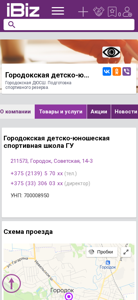 | AI-анализ | This online resource is dedicated to the City of Gorodok's Children and Youth Sports School (Городокская детско-юношеская спортивная школа ГУ). The primary focus of the school is the preparation of a sports reserve. The website provides company information, products and services related to sports clubs, societies and constructions. The school's address is listed as 211573, Gorodok, Sovietskaya, 14-3. Contact information includes phone numbers +375 (2139) 5 70 xx and +375 (33) 306 03 xx. The company's Unified Taxpayer's Register number is 700008950. The school's operating hours are listed as Monday through Friday from 8:00 AM |