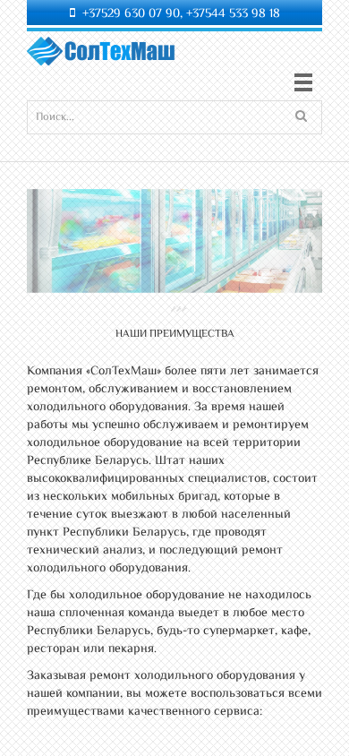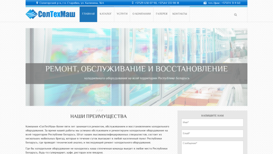 | SEO-описание | Сайт компании СолТехМаш г.п. Старобин. Обслуживаем, ремонтируем и восстанавливаем холодильное оборудование на всей территории Республике Беларусь |