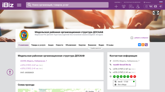 | AI-анализ | The portal is a regional organizational structure of the Belarusian DOSAAF - Miaдель Regional Organization DOSAAF. It offers driver training and the restoration of driving skills. The organization also features an auto racing track. The address is 222395, Miaдель, Navarezhna, 7. Contact telephone numbers are +375 (1797) 2 67 xx and +375 (1797) 2 41 xx. The company's UNP number is 690508429. The opening hours are Monday to Friday from 8:00 to 17:00 without lunch and Saturdays and Sundays are closed. The company is listed under the categories of 'Auto Schools, Driving Courses' and 'Auto Schools, Driving Courses in Mia |