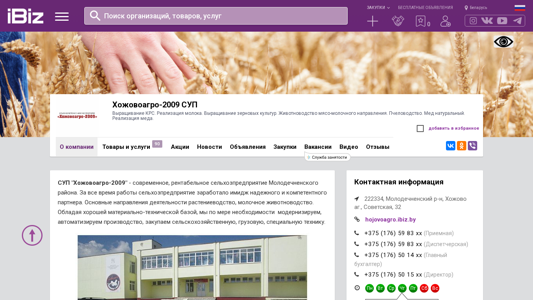 Сайт: hojovoagro.ibiz.by — HTTP 200 (OK)