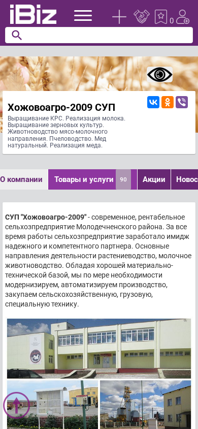 Название / ЗаголовокХожовоагро-2009 СУП - Выращивание КРС. Реализация молока. Выращивание зерновых культур. Животноводство мясо-молочного направления. Пчеловодство. Мед натуральный. Реализация меда.. 222334, , Хожово аг., Советская, 32