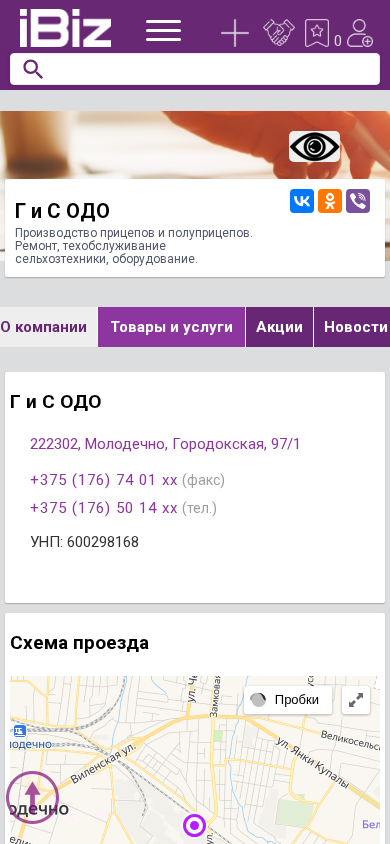 | Название / Заголовок | Г и С ОДО - Производство прицепов и полуприцепов. Ремонт, техобслуживание сельхозтехники, оборудование.. 222302, Молодечно, , Городокская, 97/1 |