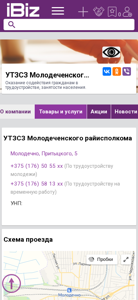 | AI-анализ | The web project "UTZSZ Mолодеченского райисполкома" (molodechno-mintrud.ibiz.by) is a local government employment center in Minsk region, Belarus. It provides services for job seekers and employment for the population. The website offers contact information, including phone numbers for youth employment and temporary work. The company's UNP (identification number) and location, Minsk region, Molodechno, Pritytskogo 5, are also provided. The website includes sections for company information, goods and services, employment centers, announcements, and contacts. Users can add the company to their favorites and view statistics, contact information, and opening hours. The company can be found in the categories "Centers for employment population" and "Centers for employment population in Mолодечно". The website is rated by users and operates |
