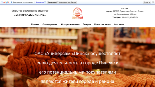 | AI-анализ | --- The portal universampinsk.by is a website for Open Joint Stock Company (OJSC) "Universam Pinsk," a food retailer based in the city of Pinsk, Belarus. The company's mission is to provide the fullest satisfaction of customers' taste preferences by selling high-quality domestic food products. Established in 1990, OJSC "Universam Pinsk" is one of the most attractive and popular retailers in the city. In 2020, the company celebrates its 30th anniversary. The website contains information about the company, its history, news, and promotions, as well as contacts. The trading areas of OJSC "Universam Pinsk" include the main sales hall and a cafe. A commission against corruption was established within the company in April 2025 to combat corruption. |