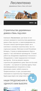 | AI-анализ | This website is for a Belarusian company named Леслентехно that specializes in building wooden houses and saunas turnkey. The company constructs various types of wooden structures such as houses, saunas, gazebos, bytovkas, terraces, dachas, and drying racks using profiled lumber and carcasses. They operate throughout Belarus and have their own production facilities. The website includes sections on the company, its products, and services, as well as contact information. The title of the website is "Строительство деревянных домов и бань под ключ" (Construction of wooden houses and saunas turnkey) and the description includes keywords related to wood construction, houses, saunas, production, and Belarus. |