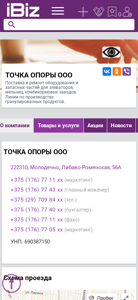 | AI-анализ | This online resource is dedicated to ТОЧКА ОПОРЫ ООО, a company based in Mолодечно, Belarus, specializing in the sale and repair of equipment and spare parts for elevators, mills, and combinator feed mills. The company also offers production lines for granulated products. The website provides a map for visitors, contact information including phone numbers and a fax number, and operating hours. The company's UNP number is 690387150. |
