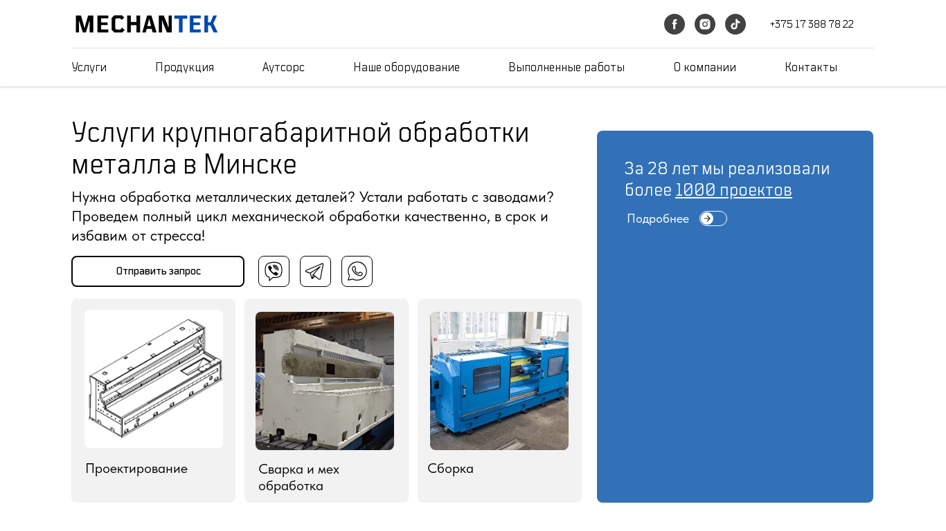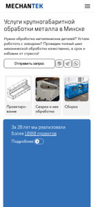| AI-анализ | --- This website is for a metal processing company named Механтек located in Minsk, Belarus. The company offers custom metal processing services including design, manufacturing, welding, mechanical processing, assembly, and shaping. They boast of high-quality output, short turnaround times, and the use of advanced CNC machines. Contact information provided is a phone number +375 17 388 78 22. |
