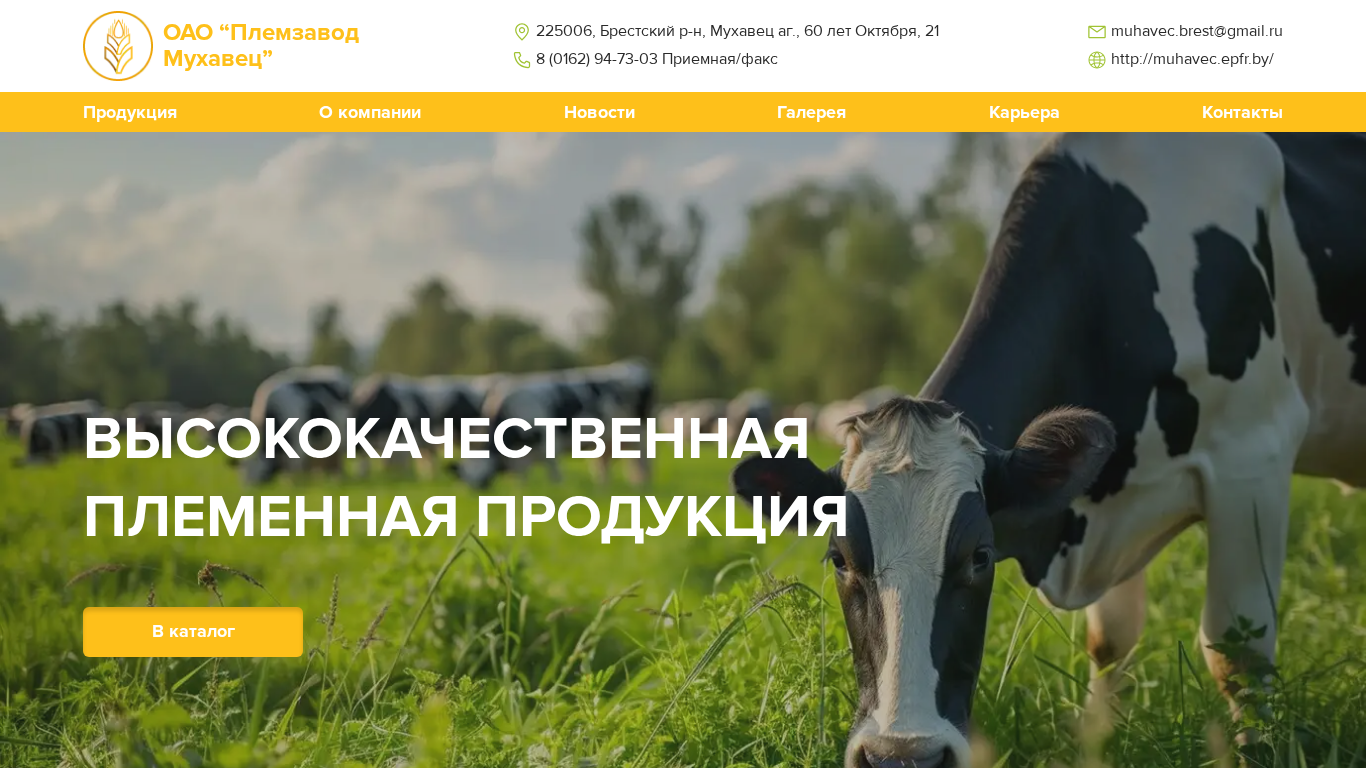 | Название / Заголовок | Главная - ОАО “Племзавод Мухавец” |