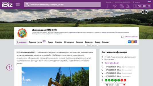 | AI-анализ | This website is for Лиозненское ПМС КУП, a company based in Dobromyсли ag., Gorbovskaya 1, in the Lioznensky district, Belarus (211223). The business specializes in the construction, repair, exploitation, and technical maintenance of hydrotechnical and meliorative objects in the Lioznensky region. Meliorative and cultural-technical works are also offered. The website includes sections for company information, products and services, news, announcements, vacancies, and customer reviews. Keywords associated with the website include 'meliorative works', 'machinery', 'construction', 'objects', 'systems', and 'Lioznenское ПМС'. |