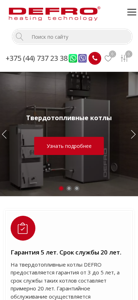 --- This online resource is a Belarusian e-commerce website for Defro, a company based in Minsk that specializes in the production and sale of various types of heating appliances, including solid fuel, pellet, electric, and gas-fired boilers. The website provides information on the company, its products, and services such as installation, delivery, and payment options. The company is confident in the quality of its Defro branded equipment and offers consultation and support for its clients. The website features a catalog of different types of heating systems, including tverdotoplivnye (solid fuel) and avtomaticheskie peletnye (automatic pellet) boilers, as well as buffered tanks for use in heating systems and gas water heating. The website also offers a personal cabinet for clients and contact information. The company provides a 5-year warranty and a 2
