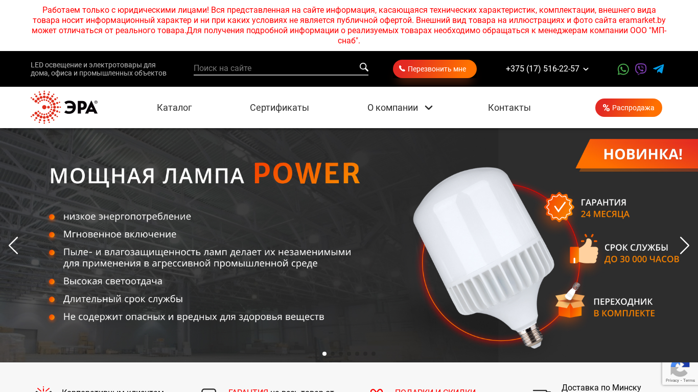| SEO-описание | Купить LED освещение и электротовары для дома и промышленных объектов в Минске торговой марки ЭРА в Беларуси от официального поставщика ООО МП-снаб. |