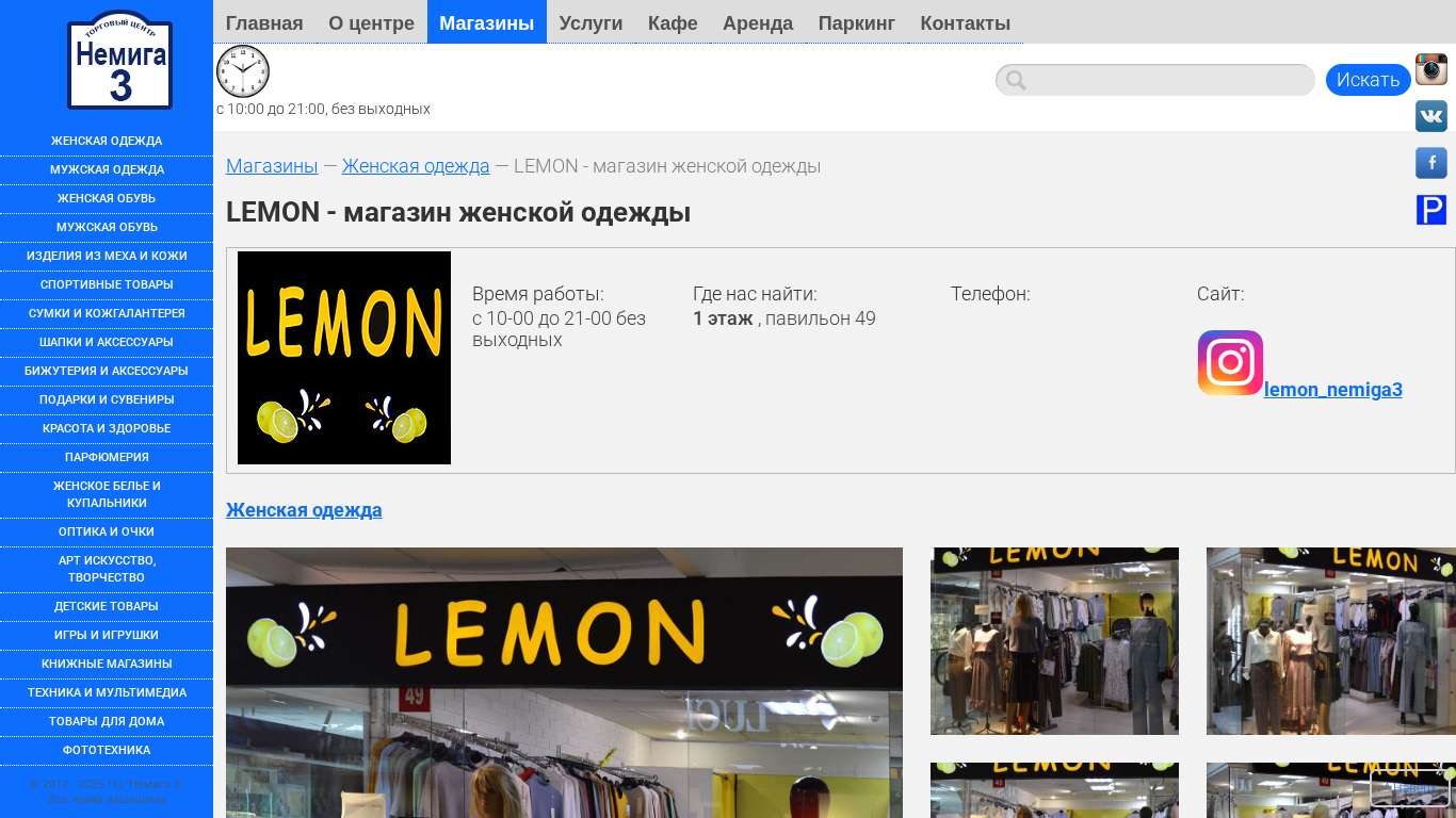 | Название / Заголовок | LEMON - магазин женской одежды :: Торговый Центр НЕМИГА 3. г.Минск |