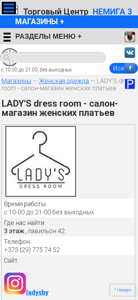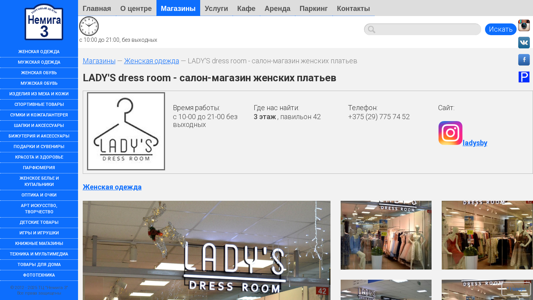 | Название / Заголовок | LADY'S dress room - салон-магазин женских платьев ::Торговый Центр НЕМИГА 3, г. Минск |