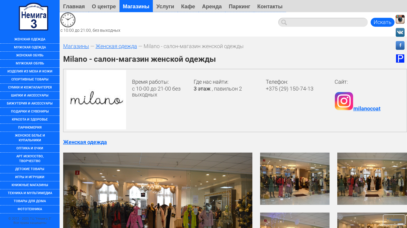 | Название / Заголовок | Milano coat - магазин женской дизайнерской одежды :: Торговый Центр НЕМИГА 3, г. Минск |
