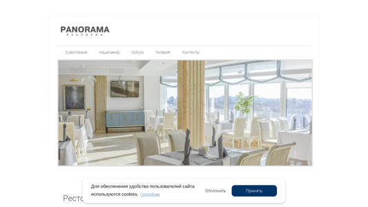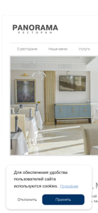 | AI-анализ | This online resource is a website for the Panorama Restaurant located in the Belarus hotel in the center of Minsk, Belarus. The website provides information about the restaurant, including its location on the 22nd floor of the Belarus hotel with a panoramic view of the city, and its offerings such as romantic dinners, diplomatic event services, and professional chefs. The website uses cookies for user convenience. |