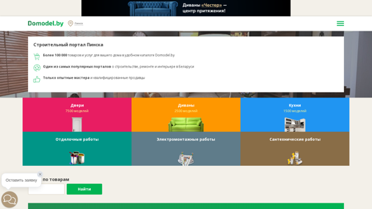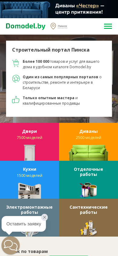 | AI-анализ | The portal Pinsk.Domodel.by is a building portal in Pinsk, Belarus. It offers a catalog of products for repair and decoration works, featuring a wide range of furniture, interior items, and home appliances with prices and photos. Contact information for qualified industry professionals and their specific construction and decoration service costs are also provided. Additionally, the site includes news and educational articles with expert advice. The menu includes sections for Repair and Decorating, Building, Furniture, and Landscaping. The portal hosts over 100,000 products and services for your home in a convenient catalog. It is one of the most popular portals about construction, repair, and interior design in Belarus. Only experienced professionals and qualified salespeople are involved. The catalog includes 7500 door models, 2500 divan models, and 150 |