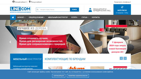 | AI-анализ | --- The website "ОДО "ЛАЙН-КОМ" is an e-commerce platform offering both wholesale and retail sales of furniture fittings, materials, and components for the production of furniture. The business features a flexible discount system for all customers. The website provides contact information for physical sales at a retail pavilion in Vitsebsk and an office location for individual and corporate clients. The retail pavilion is open for business Monday through Friday, 10:00-18:00, and on weekends, the pavilion is closed. The office is open Monday through Friday, 8:30-17:00. The website offers a catalog with various categories, including new items, and features a mechanism for users to create and manage orders. The company offers additional services, such as custom cutting of LDSP and DSP materials in |