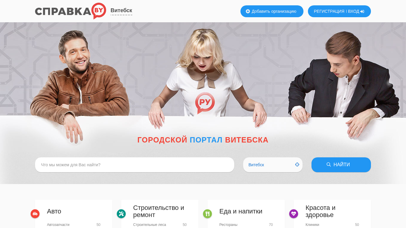 | AI-анализ | The portal Vitebsk City Portal, Business Directory provides a catalog of businesses and reference information for the city of Vitebsk. All useful information can be found on Spravka.BY. The website offers categories such as auto, construction and repair, food and drinks, beauty and health, sport, and services, among others. There are separate sections for auto parts and garages, construction materials, architectural services, equipment rentals, and plumbing and sewage installation. In the food and drink category, there are listings for restaurants, bars, cafes, and coffee shops. The beauty and health section includes clinics, hair salons, perfume companies, cosmetic companies, medical centers, and more. Sports and fitness options include fitness clubs, sports clubs, sports complexes, and velomagazines. The services category includes ateliers for clothing, communal services, lending services |