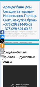 | AI-анализ | The website is for a rental service of a cabin, sauna, and gazebos located in the areas of Gendiki and Ekimani near the cities of Novopolotsk and Polotsk in Belarus. Visitors can rent these facilities for a day and contact the service at the provided phone numbers for bookings. The website mentions the availability of organizing weddings, corporate events, and celebrations in nature. The rental service includes a spacious heated house with a fireplace, a sauna, and two gazebos, as well as mangals for preparing shashlyk on coals. The usadba 'White Pier' is also mentioned as a place for a relaxing retreat. The website is located at 2ozera.by. |