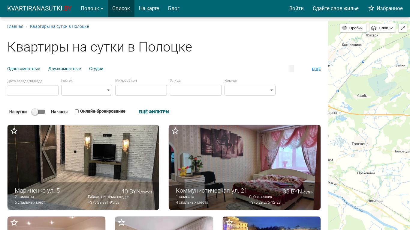 | SEO-описание | Квартиры на сутки в Полоцке без посредников! Посуточная аренда квартир в Беларуси. Цены от 19 $, поиск на карте, настоящие фото. |