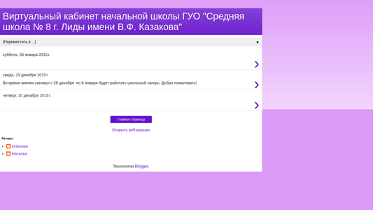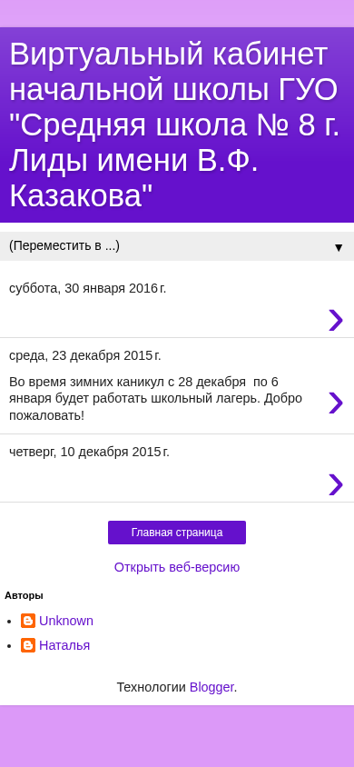 | Название / Заголовок | Виртуальный кабинет начальной школы ГУО "Средняя школа № 8 г. Лиды имени В.Ф. Казакова" |