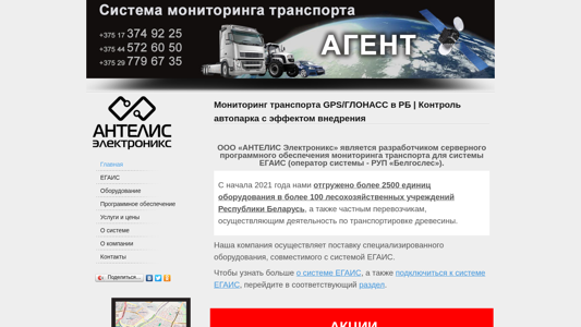This online resource is a GPS/GLONASS transport monitoring system in Belarus. It involves the installation of navigation equipment, fuel level sensors, digital tachographs and other related devices. The system allows for control of an auto fleet including location, mileage, fuel consumption, and temperature.