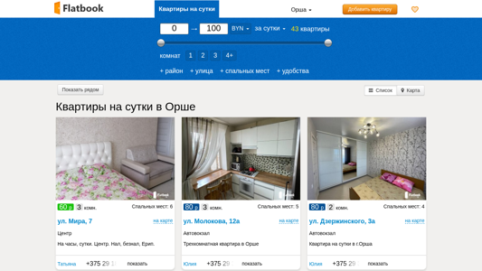 | Название / Заголовок | Квартиры на сутки в Орше без посредников. Снять квартиру посуточно |