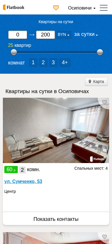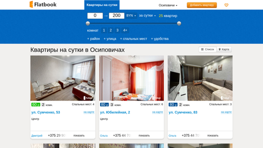 | Название / Заголовок | Квартиры на сутки в Осиповичах без посредников. Снять квартиру посуточно |