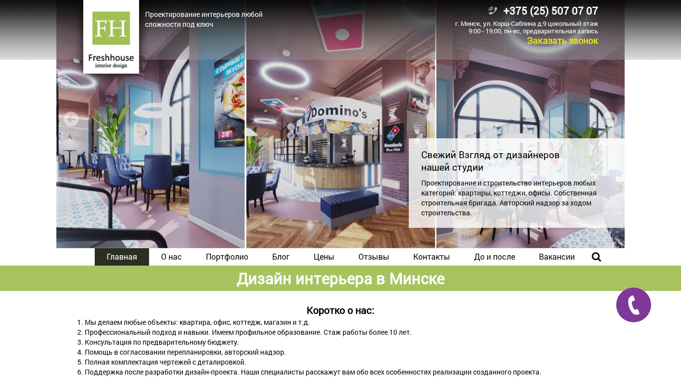 | Название / Заголовок | Дизайн интерьера в Минске, заказать дизайн-проект, услуги дизайнера интерьера | Дизайн студия FreshHouse |
