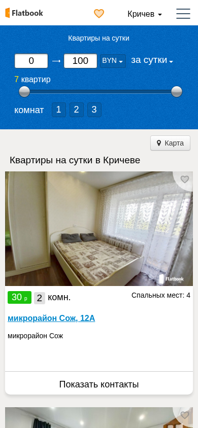 Название / ЗаголовокКвартиры на сутки в Кричеве без посредников. Снять квартиру посуточно