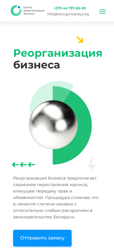 | SEO-описание | Оказание услуг по реорганизации юридического лица в любых формах. Бесплатная консультация. Квалифицированные специалисты. Индивидуальный подход. Телефон: +375(29) 615-68-51 |
