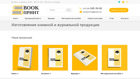 | SEO-описание | Изготовление книг, журналов, каталогов в Минске. Твердый и мягкий переплёт. Доставка по РБ ☎ +375 (29) 345-39-06 |