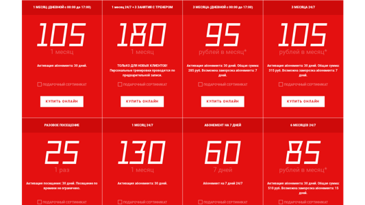 | AI-анализ | The web project "GYM express" offers various fitness subscription plans. Customers can purchase a one-month subscription for 130 rubles, which includes 24/7 access to the gym. Another option is a one-month daytime-only subscription for 105 rubles. A three-month subscription is available for 285 rubles or 315 rubles, depending on the hours of access. A one-time visit can be purchased for 25 rubles. Personal training sessions are offered by appointment. The website allows for online purchasing of subscriptions and certificates as gifts. Subscriptions can be activated within 30 days of purchase, and there is an option for a 7-day freeze. The prices listed are per month. |
