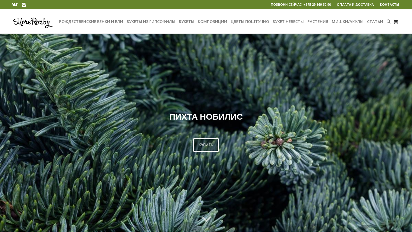 | AI-анализ | The website is an online flower shop named MoreRoz.by, offering a wide range of flowers including roses, tulipans, chrysanthemums, and seasonal flowers for purchase with delivery. Customers can choose from various bouquet sizes and types, as well as premium and winter bouquets. The shop also sells gift items such as teddy bears, decorative vases, and Christmas wreaths. Prices vary from 12 to 480 rubles. The website also features articles on wedding trends and tips for prolonging the life of flowers. The title of the website is "Купить цветы в MoreRoz.by с доставкой по выгодной цене" which translates to "Buy flowers in MoreRoz.by with delivery at a good price." The keywords include "букет" (bouquet), |