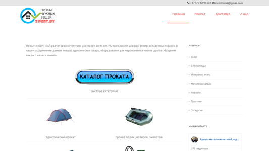 | AI-анализ | The website Zivert.by offers a wide range of products and services. The main categories include tourism, leisure, and sports. The company has been in business for over ten years and provides various rentals such as children's items, tourist equipment, event equipment, and more. They value each customer and offer quick categories for tourist rental, boat rental, power tool rental, metal detector rental, game rental, and calorifier rental. Additionally, they have sections for bicycles, metal detectors, news, and tours. The website also includes contacts for inquiries at +375 29 8794302 and an email address zivertminsk@gmail.com. |
